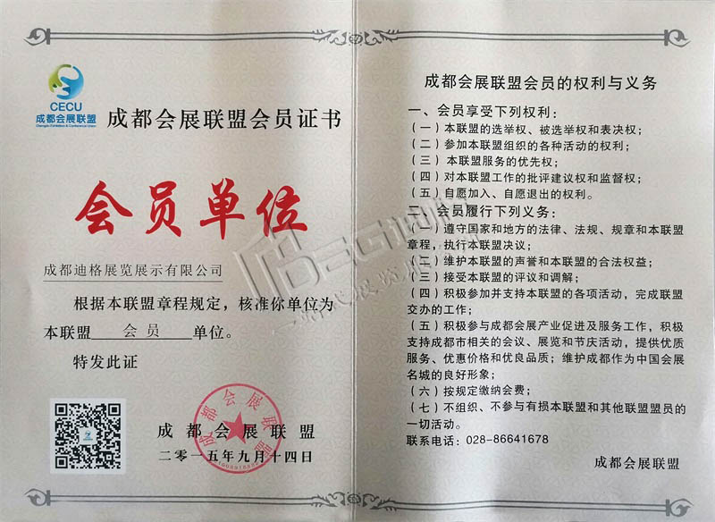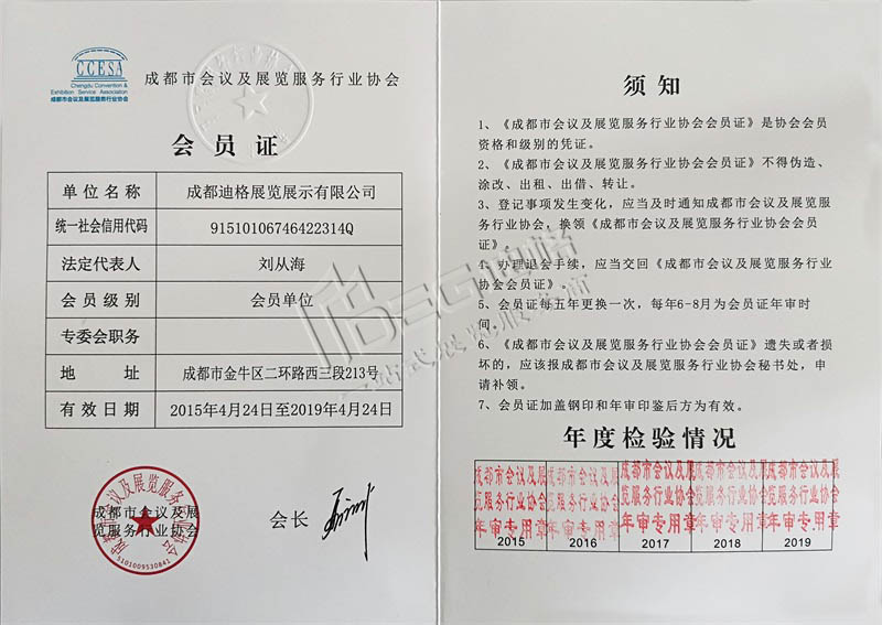 成都迪格展覽展示有限公司成立于2003年,二十余年來深耕展覽,有建筑業(yè)勞務(wù)和安許資質(zhì),是展覽陳列工程設(shè)計與施工一體化壹級企業(yè),也是四川省會議展覽業(yè)協(xié)會,成都市會議展覽業(yè)協(xié)會,會展聯(lián)盟等的會員單位。是致力于展會設(shè)計搭建、企業(yè)展廳、活動會議巡展、環(huán)保器材租賃為一體的“一站式服務(wù)商”。